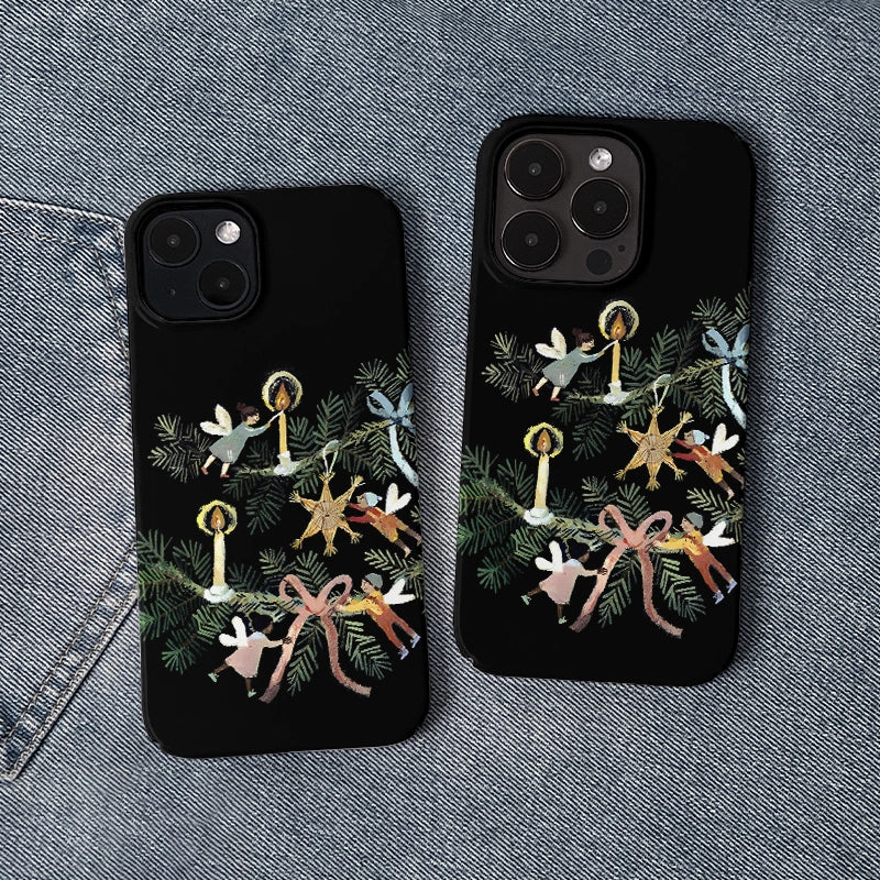 엔젤 크리스마스 오너먼트 폰 케이스로 클래식한 크리스마스의 매력을 당신의 기기에 더하세요. 은은한 블랙 바탕에 섬세하게 손으로 그린 천사, 금빛 별, 리본, 그리고 빛나는 양초가 어우러진 이 디자인은 따스함과 축제 분위기를 자아냅니다. 내구성이 뛰어난 소재로 제작되어 뛰어난 보호 기능은 물론, 휴대폰에 우아함을 더합니다. 시대를 초월하는 디자인과 기능성을 중시하는 홀리데이 애호가에게 완벽한 선택입니다.