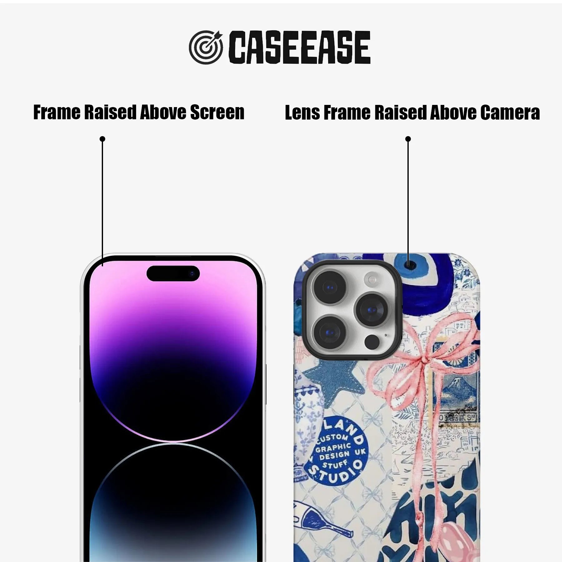 Embrace creativity with the Artistic Blue and Pink Phone Case. This eye-catching design features a playful mix of blue patterns and soft pink accents, making it a standout accessory for any phone.