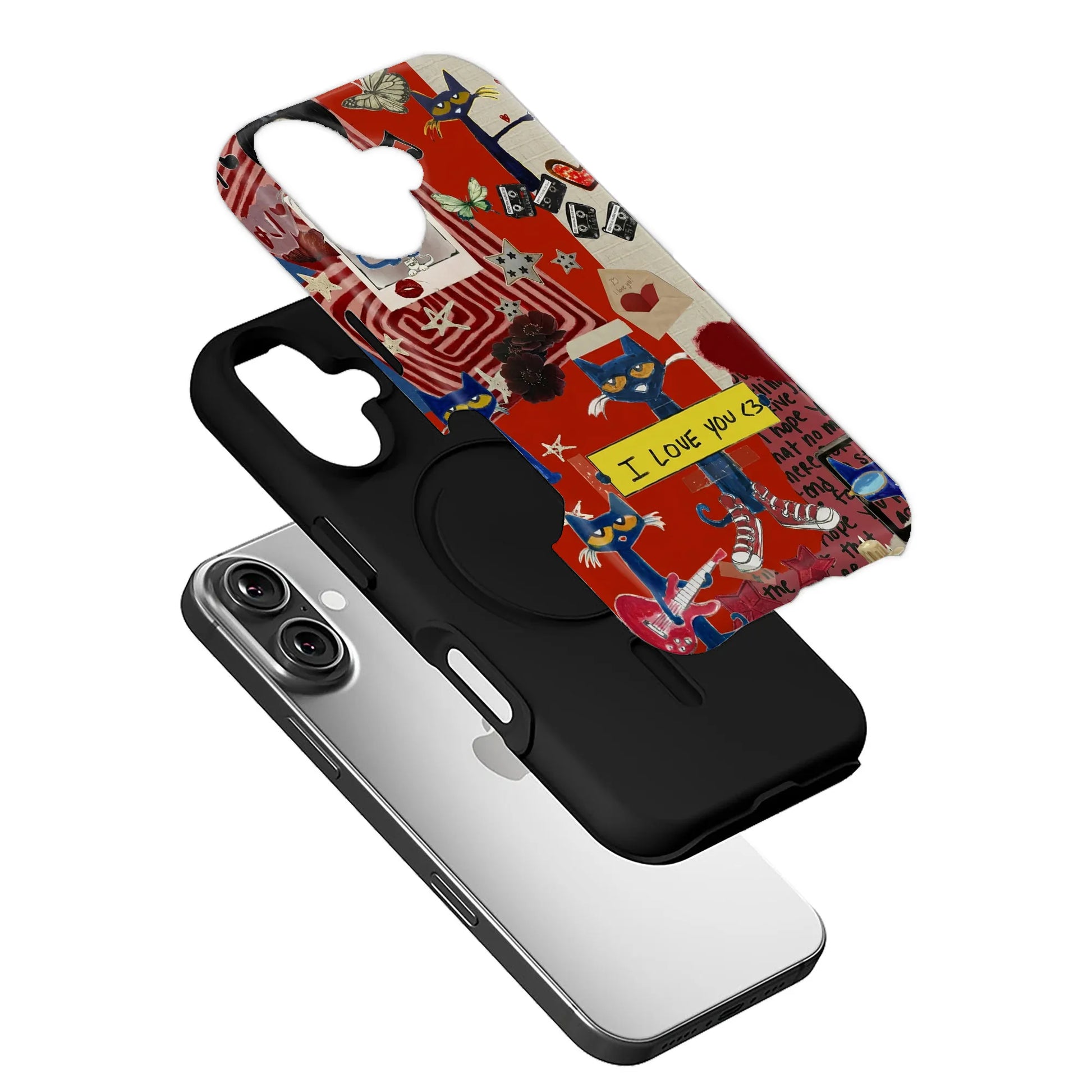 The eye-catching red background beautifully contrasts the colorful illustrations, adding a bold statement to your device. Crafted from lightweight and durable materials, this phone case not only protects your phone but also reflects your unique personality.