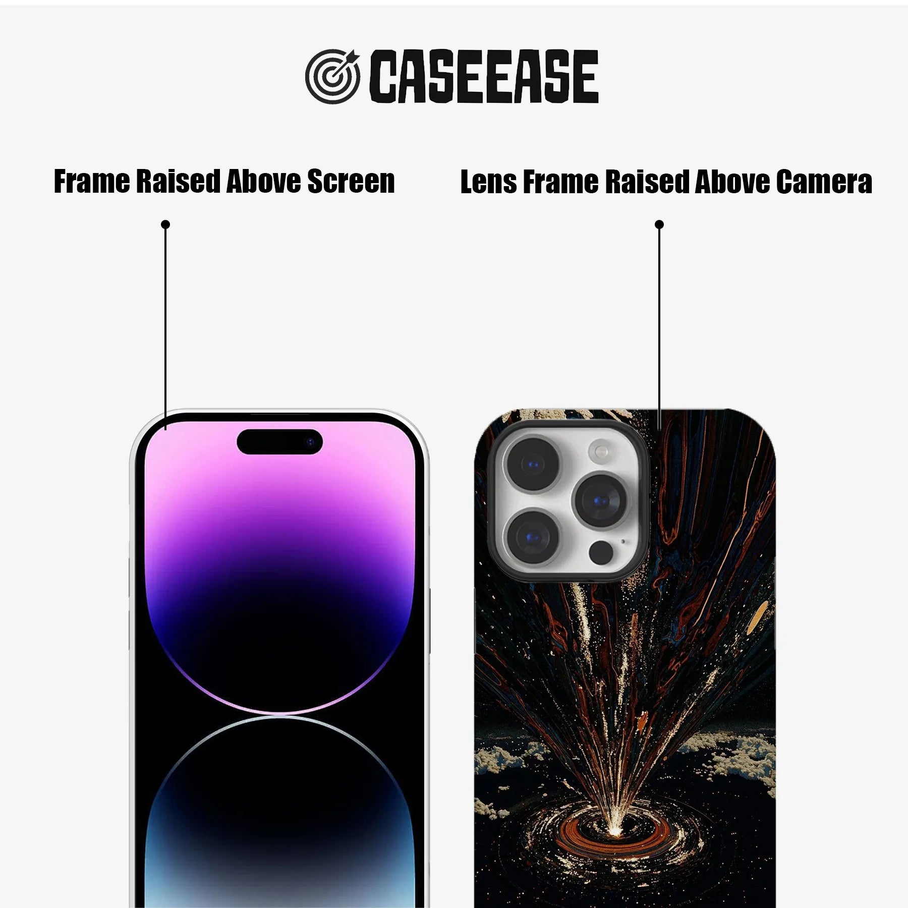 짙은 검은색 배경이 생동감 넘치는 색상과 역동적인 패턴을 더욱 돋보이게 하여, 스타일과 개성을 모두 중시하는 분들에게 완벽한 선택입니다. 내구성이 뛰어난 소재로 제작된 이 폰 케이스는 기기를 보호할 뿐만 아니라, 우주 예술의 캔버스로 탈바꿈시켜 줍니다.