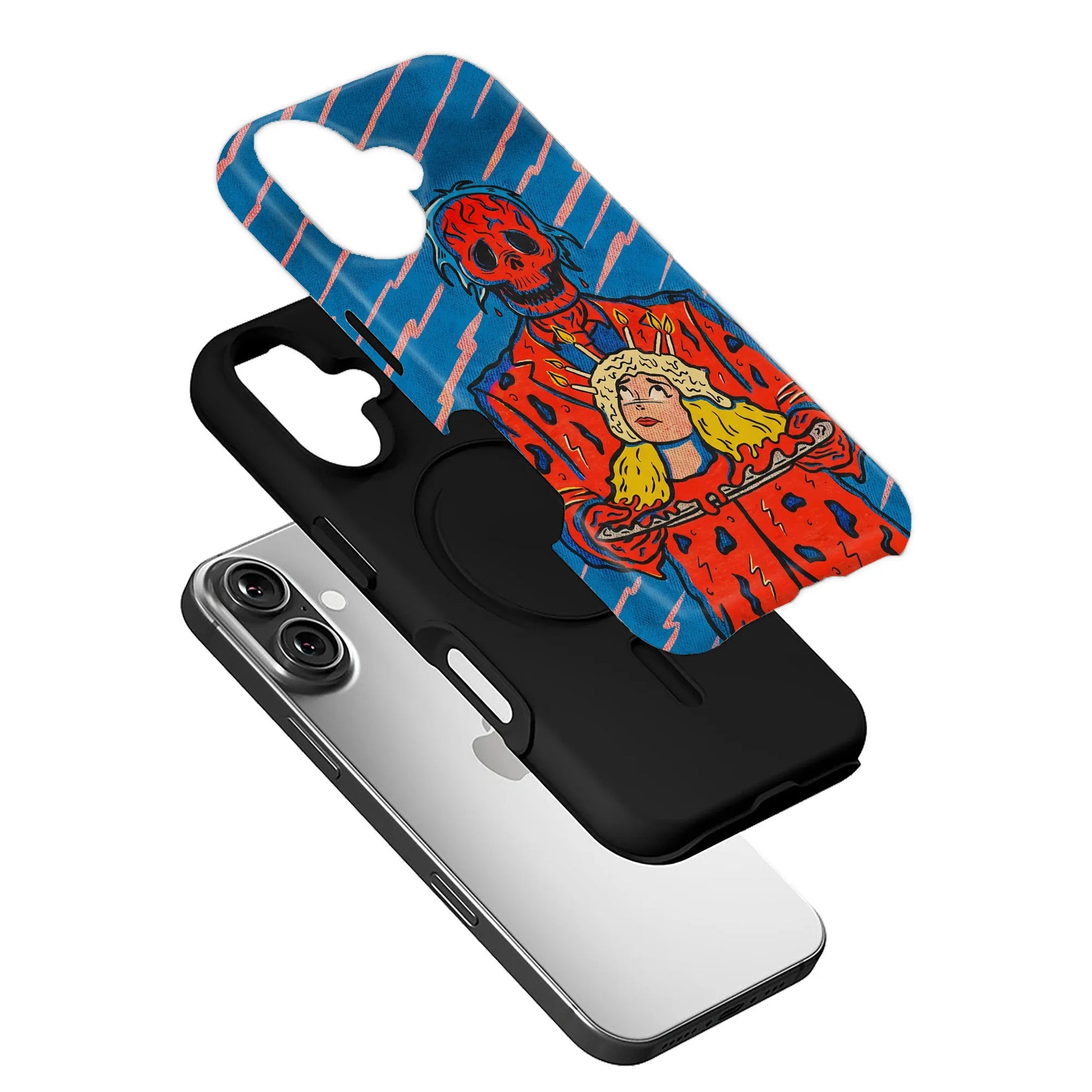 고딕 양식에서 영감을 받은 이 케이스로 휴대폰에 과감한 개성을 더하세요! 역동적인 푸른색 배경에 머리를 든 해골 모양의 인물이 그려져 있으며, 빨간색과 파란색의 강렬한 대비가 강렬한 시각적 효과를 선사합니다. 어둡고 독특한 미학을 추구하는 분들에게 안성맞춤인 이 케이스는 내구성 있는 소재로 제작되어 휴대폰을 보호하는 동시에 나만의 개성을 드러낼 수 있도록 도와줍니다. 예술성과 실용성의 완벽한 조화를 선사합니다.