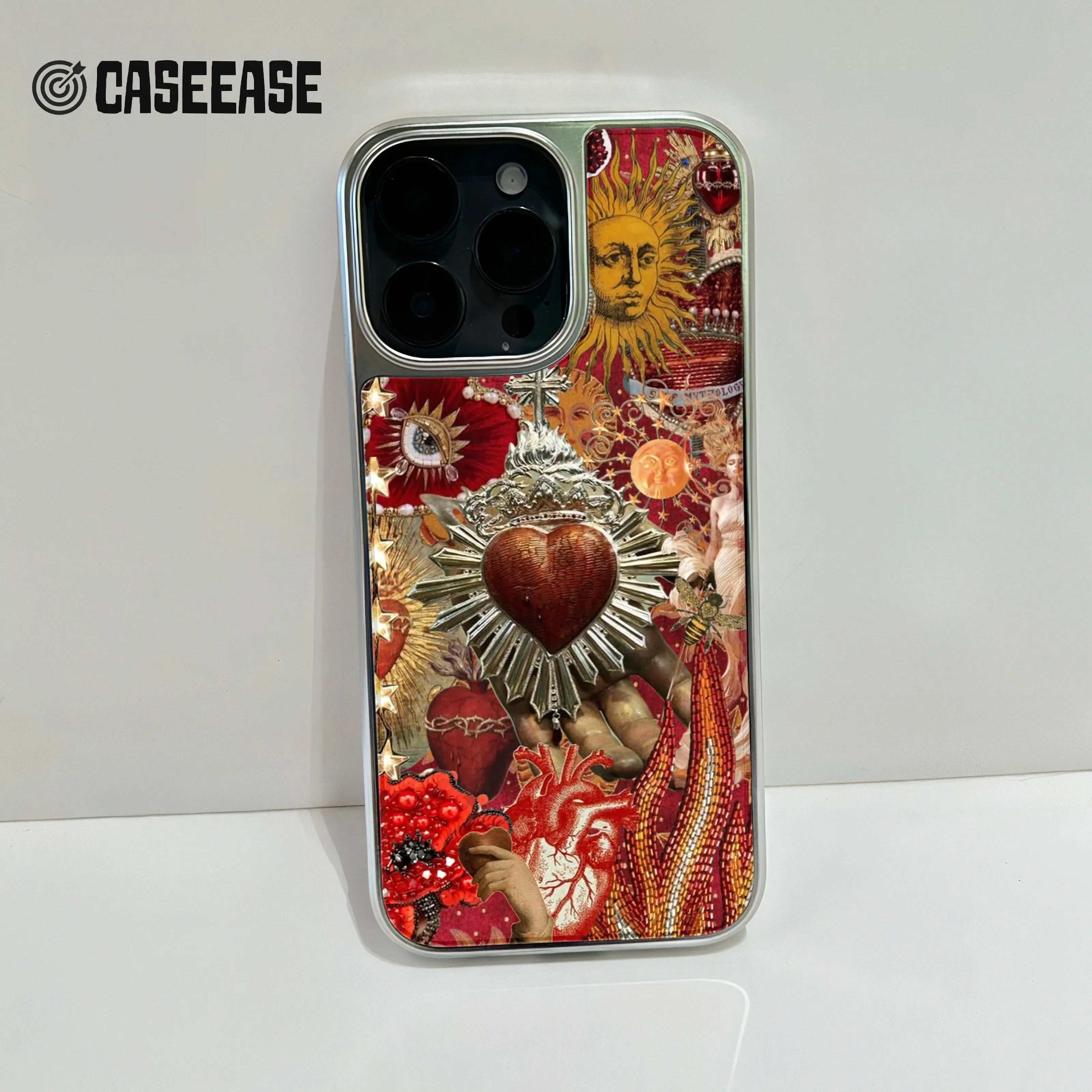 Unleash your inner artist with the Holographic Chrome Artistic Phone Case. This eye-catching design features a stunning collage of vibrant hearts, celestial bodies, and intricate patterns, all embellished with a reflective chrome finish that captures light beautifully.
