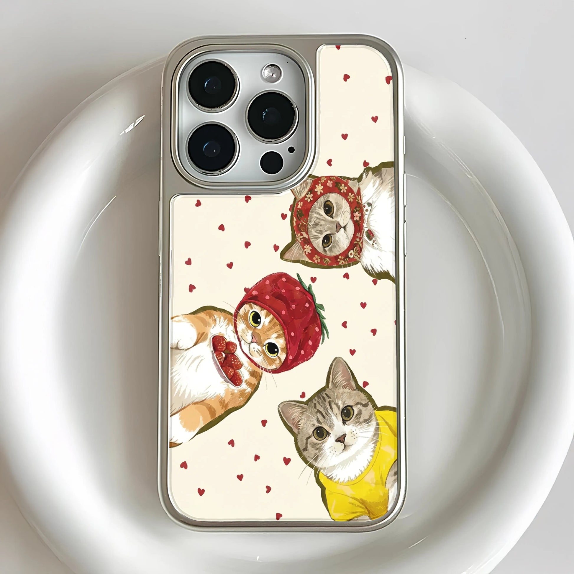 Holographic Chrome Cat Phone Case - Cute Kitties with Hearts