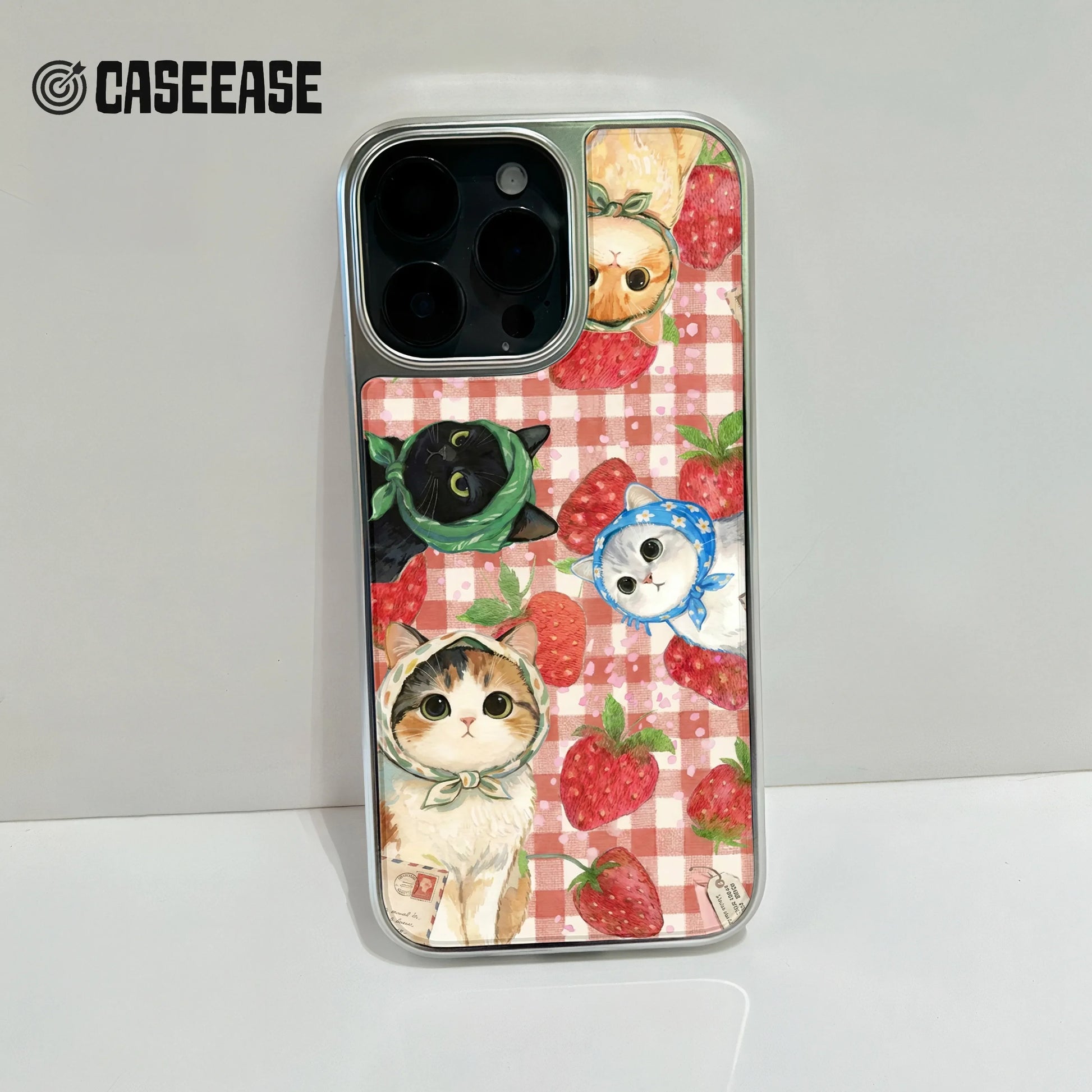 Embrace a playful aesthetic with the Holographic Chrome Cat and Strawberry Phone Case. Featuring adorable illustrations of cats playing among vibrant strawberries, this charming design brings a whimsical touch to your everyday essentials.