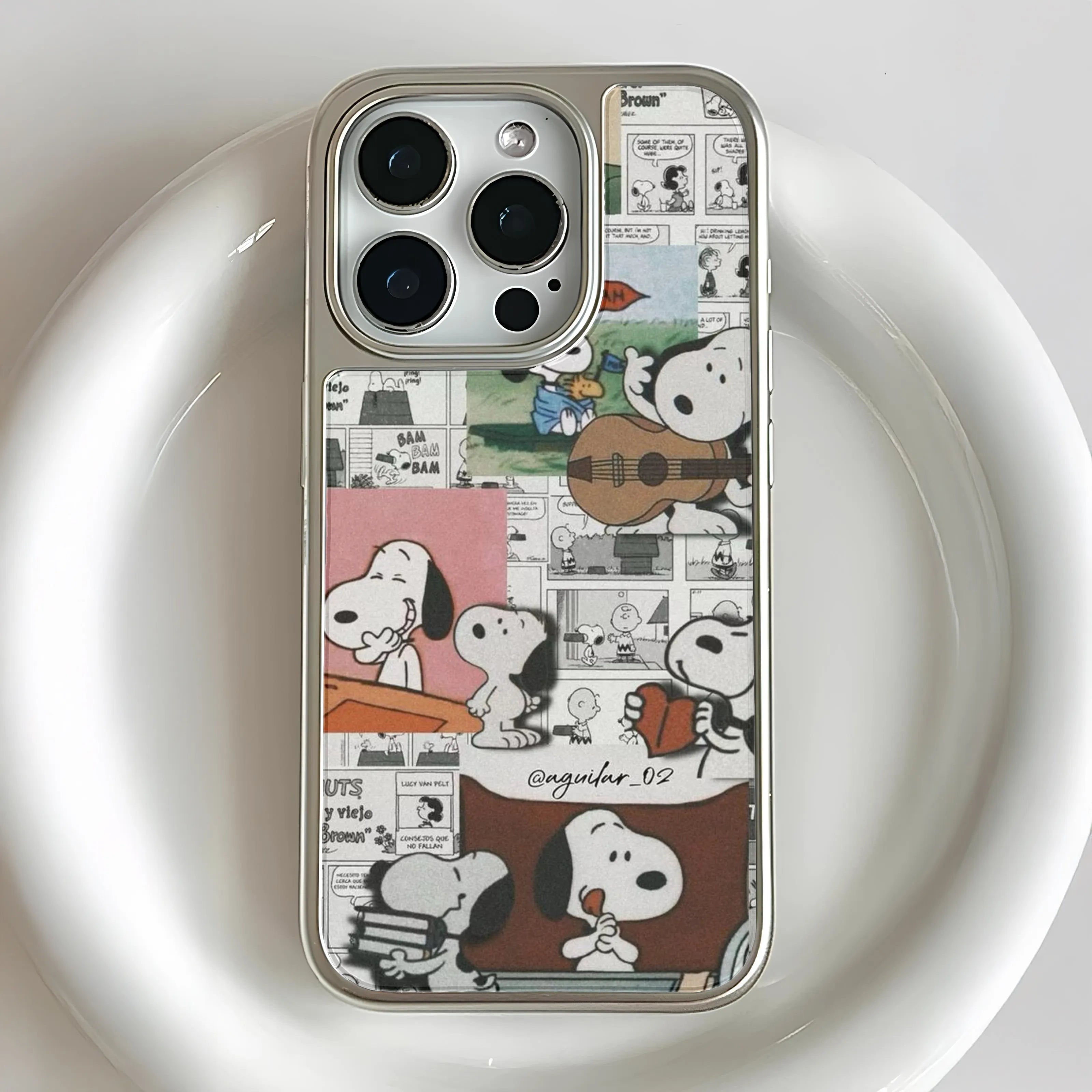 Embrace your love for classic cartoons with the Holographic Chrome Snoopy Phone Case. Featuring a vibrant and playful collage of iconic Snoopy illustrations, this unique design melds nostalgia with modern style.
