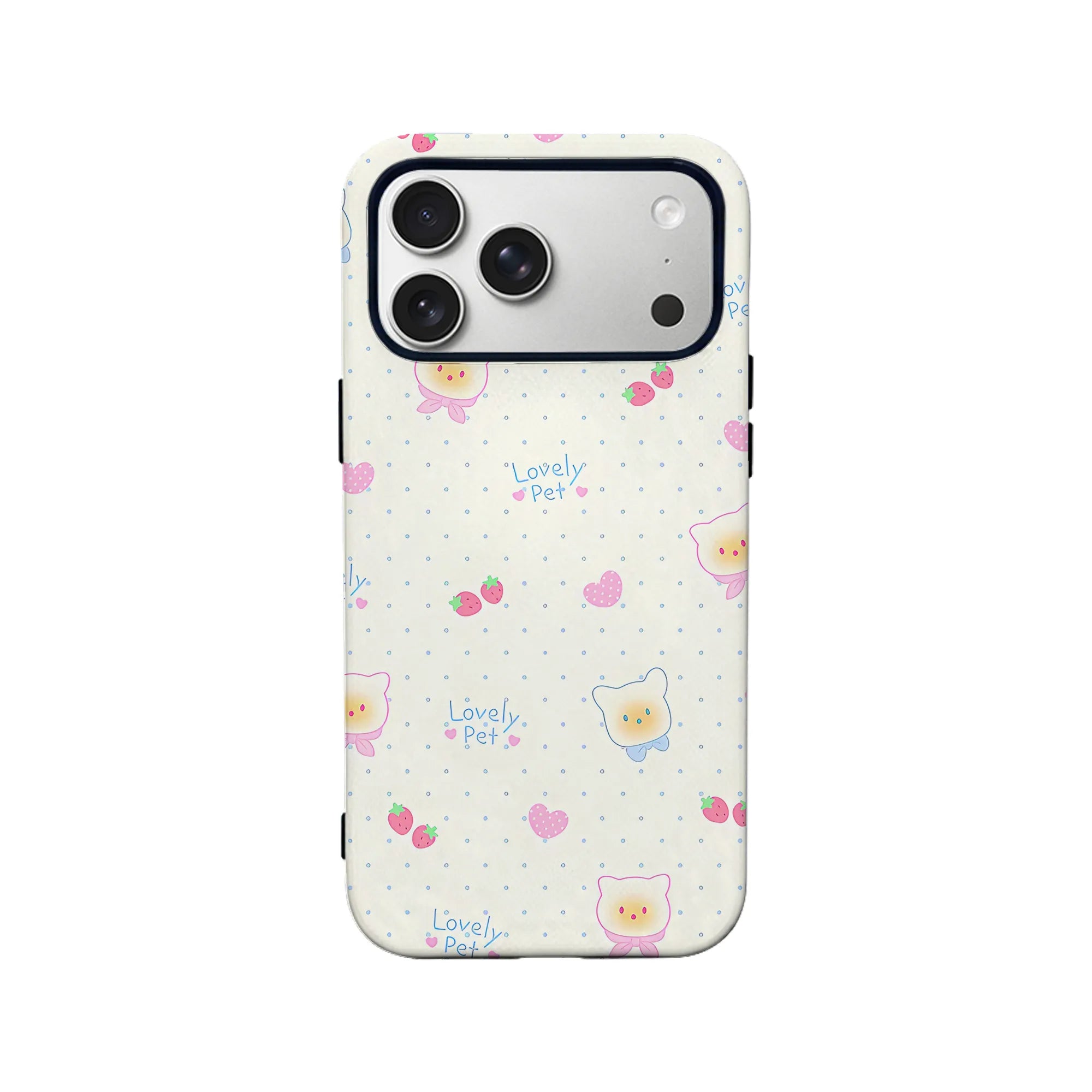 러블리 펫 폰 케이스로 휴대폰에 귀여움을 더하세요. 밝은 배경에 사랑스러운 핑크와 블루 색상의 반려동물 일러스트, 딸기, 하트가 그려진 이 디자인은 귀엽고 발랄한 것을 좋아하는 분들께 안성맞춤입니다. 휴대폰을 보호하는 동시에 매력적인 매력을 더하는 이 케이스는 휴대폰을 긁힘과 충격으로부터 안전하게 보호해 줍니다. 일상 필수품에 달콤함을 더하세요!