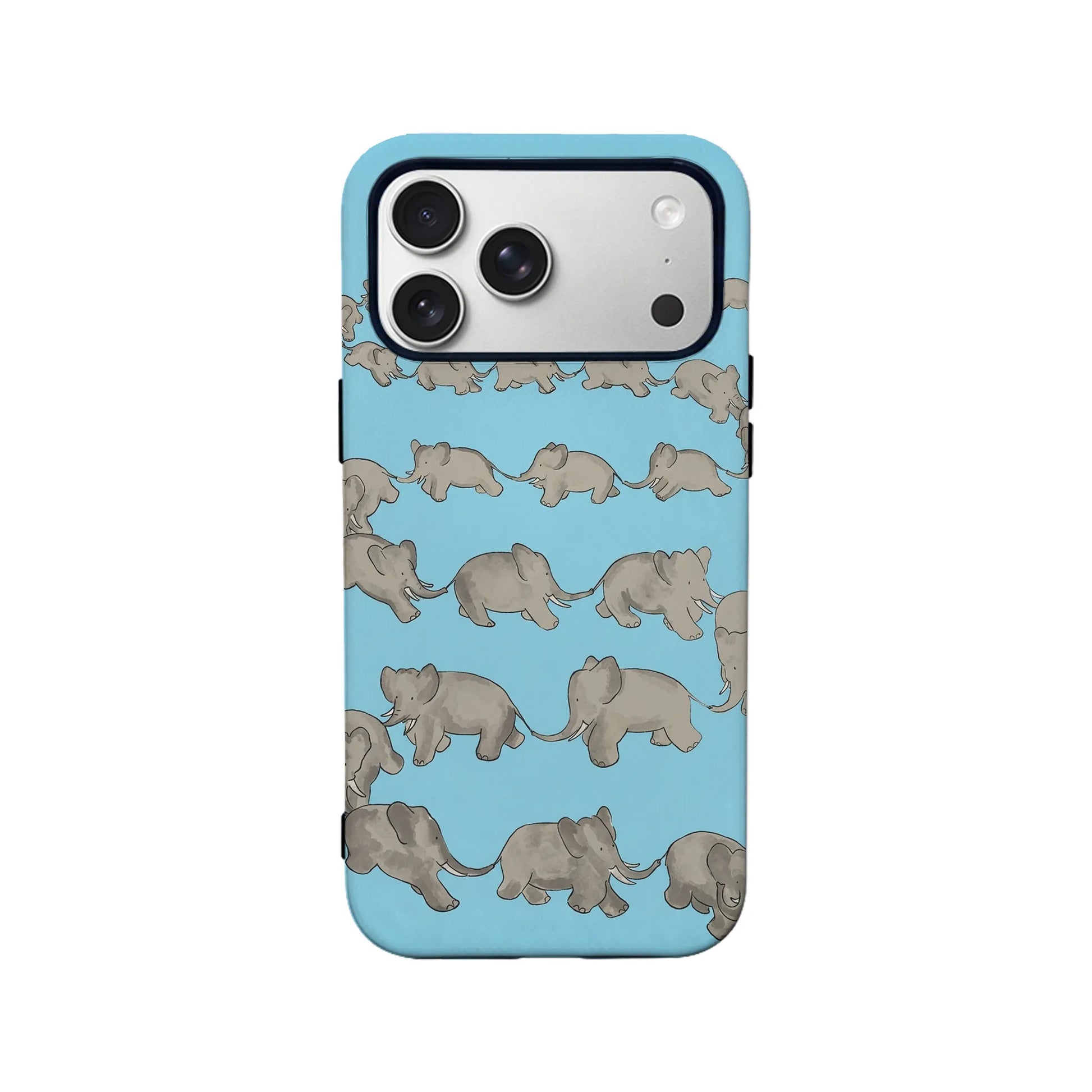 Bring a touch of whimsy to your phone with this adorable elephant phone case. Featuring a parade of little elephants holding each other's tails on a soft blue background, this case captures the essence of family, friendship, and warmth. Perfect for animal lovers, families, and those who adore cute designs, this case is a heartwarming addition to your daily life. Made from durable materials, it provides reliable protection with a charming design that’s sure to brighten your day.