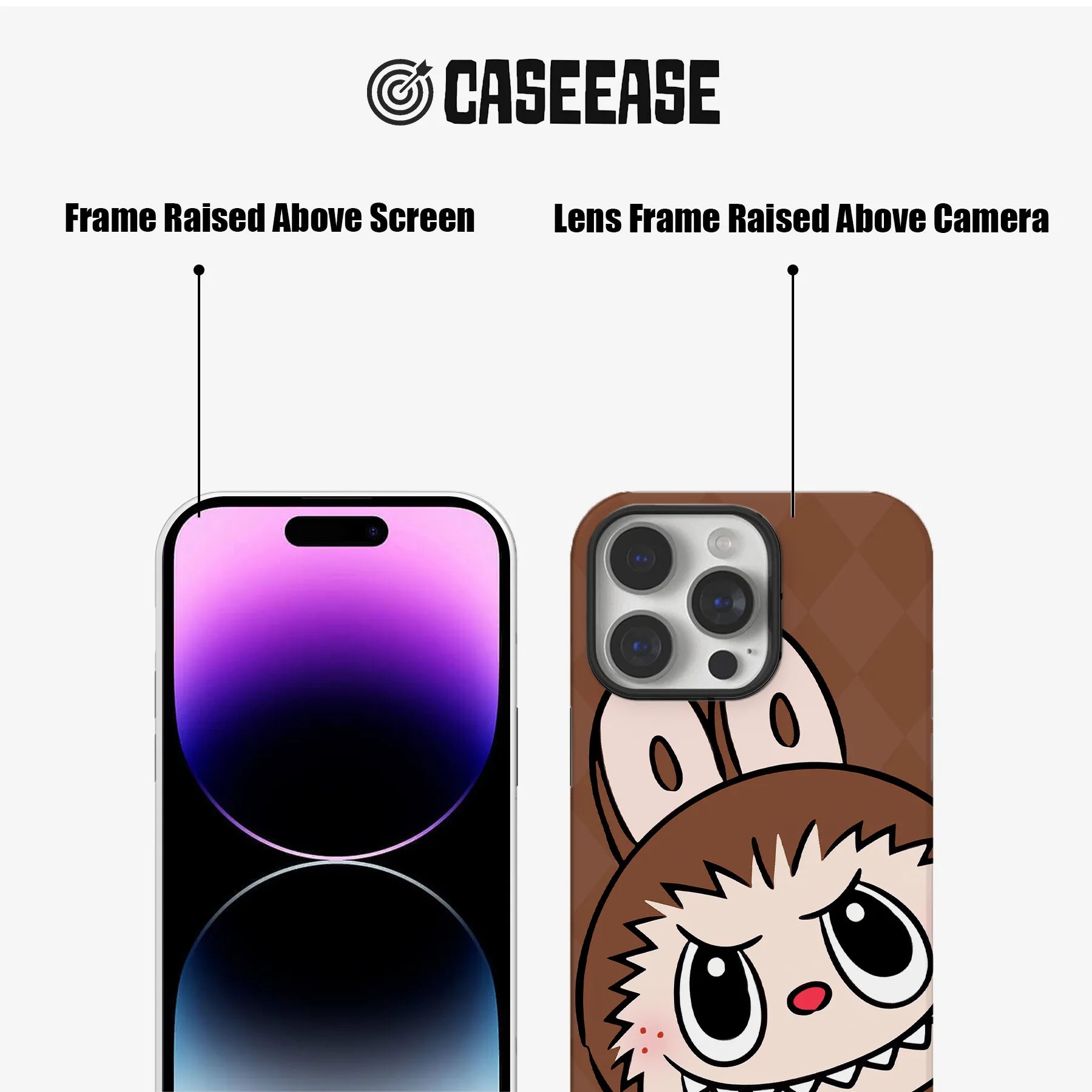 The warm brown background complements the cute character, making it an eye-catching accessory that stands out in any setting. Crafted from high-quality materials, this case not only looks great but also provides robust protection against everyday bumps and scratches.