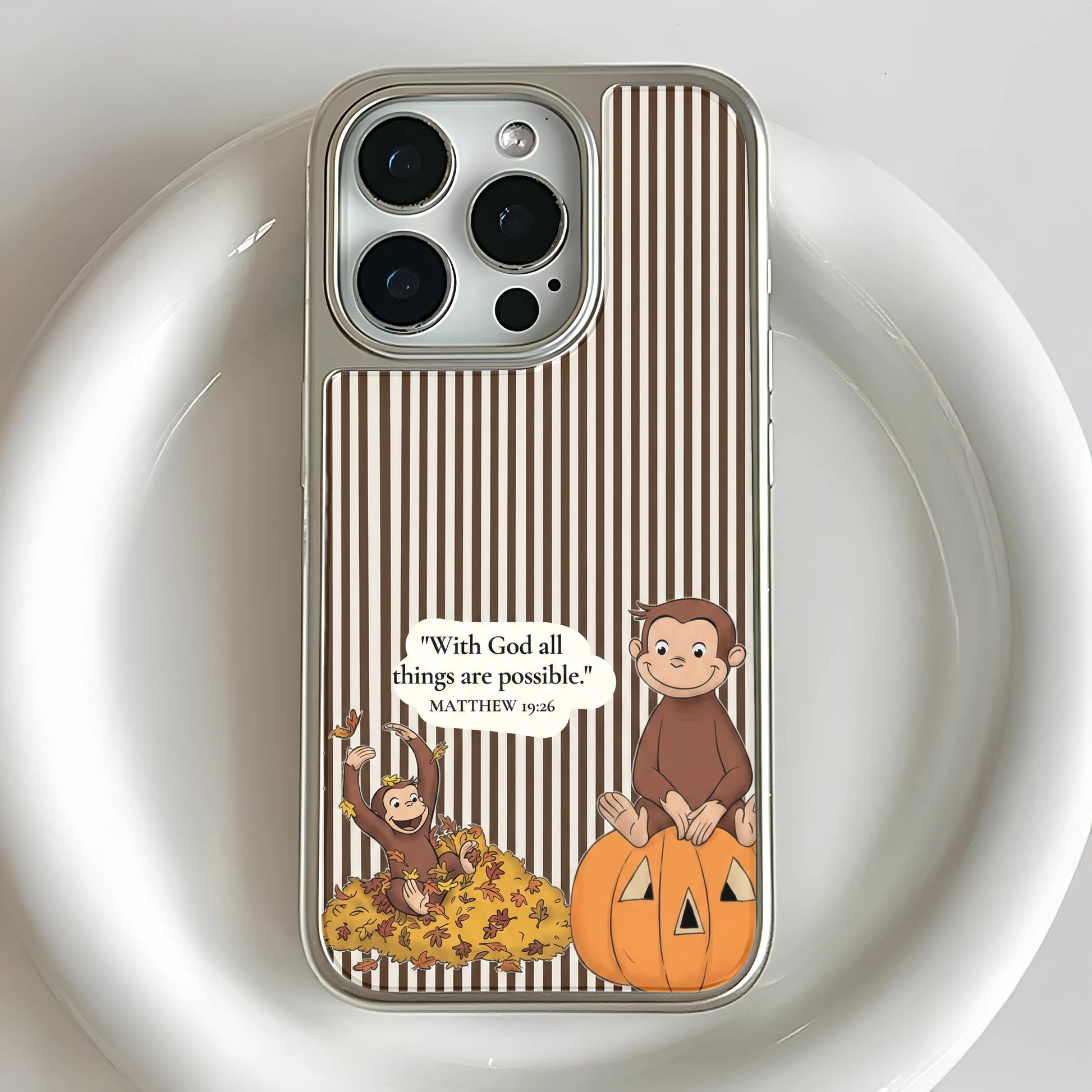 Embrace fun and creativity with the Holographic Chrome Curious Monkey Phone Case, featuring charming illustrations of playful monkeys amidst a backdrop of autumn leaves and pumpkins. This eye-catching design is perfect for those who appreciate whimsical art and the vibrant hues of fall.