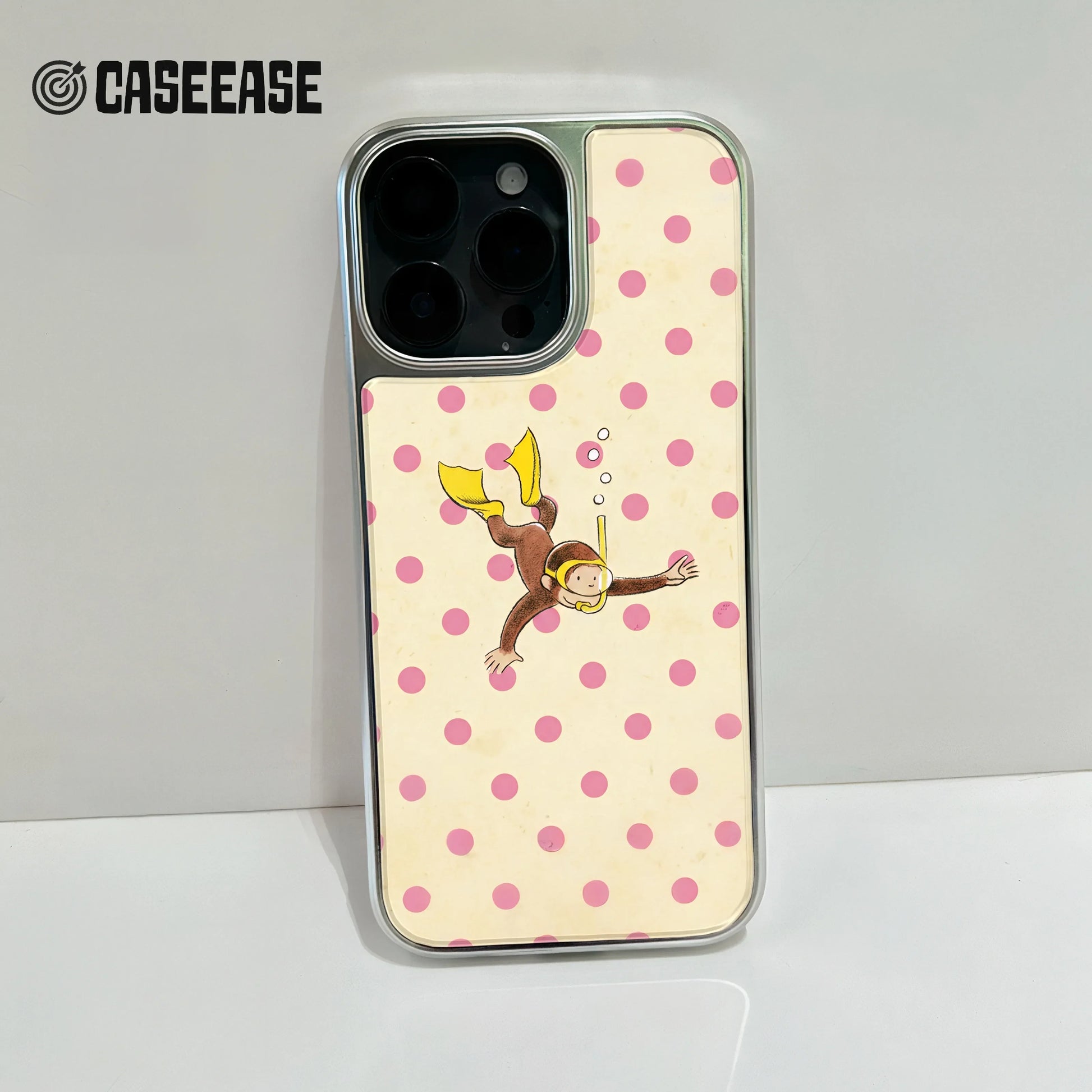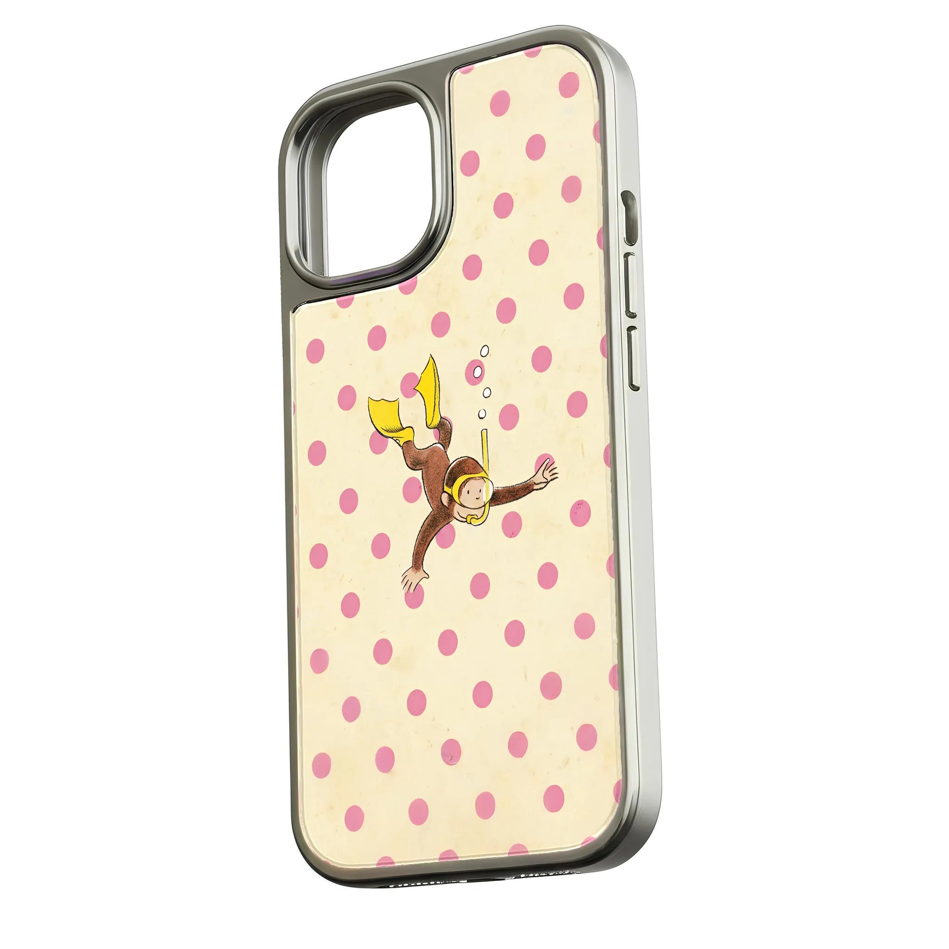 Immerse yourself in fun with the Holographic Chrome Scuba Diver Phone Case. This playful design showcases a whimsical scuba diver enjoying a dive surrounded by charming pink polka dots, making it a delightful accessory for your phone.