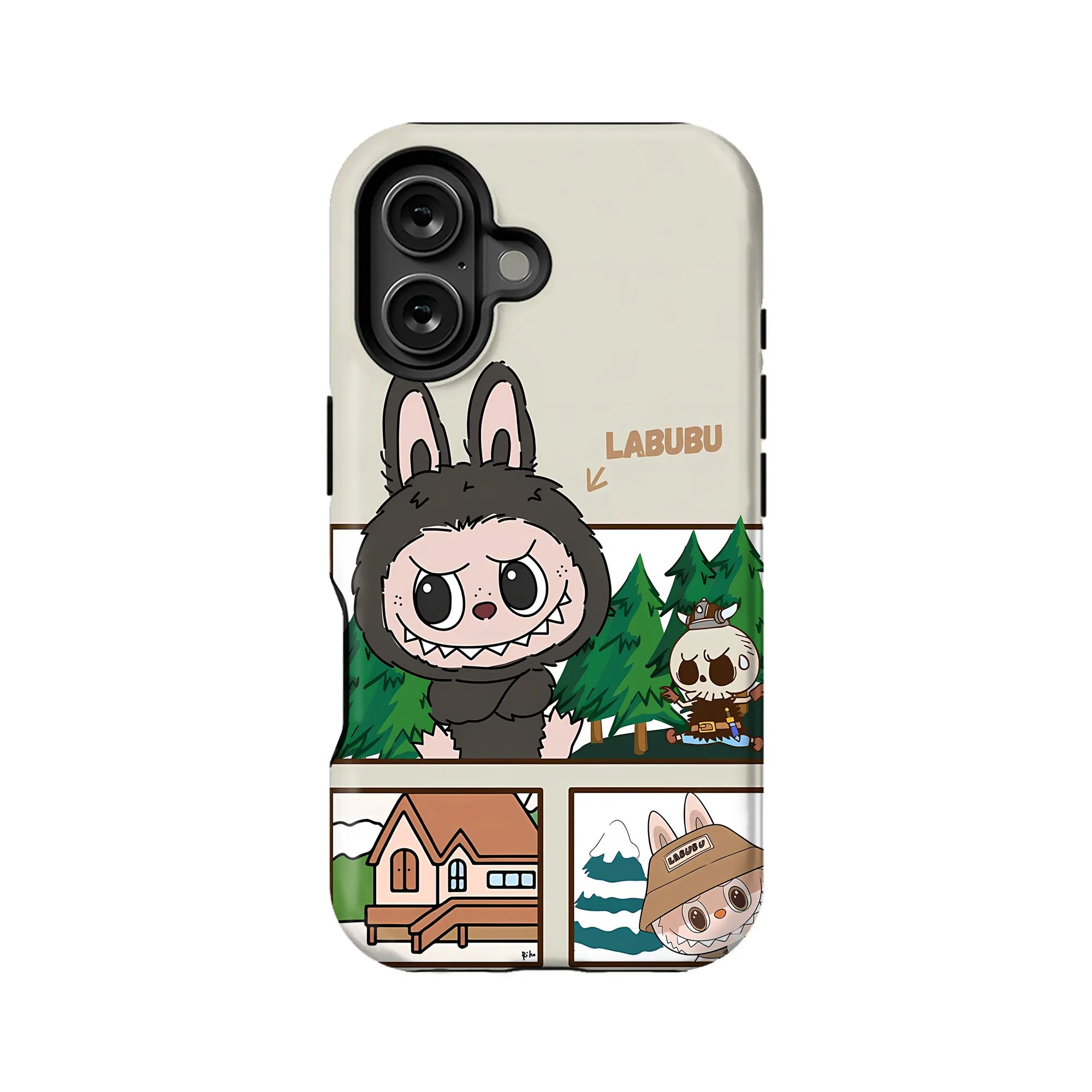 Embrace your playful side with the Labubu Cartoon Phone Case, designed for those who love adventure and fun. This charming case features the adorable Labubu character surrounded by whimsical woodland scenes, blending cuteness with an adventurous spirit.