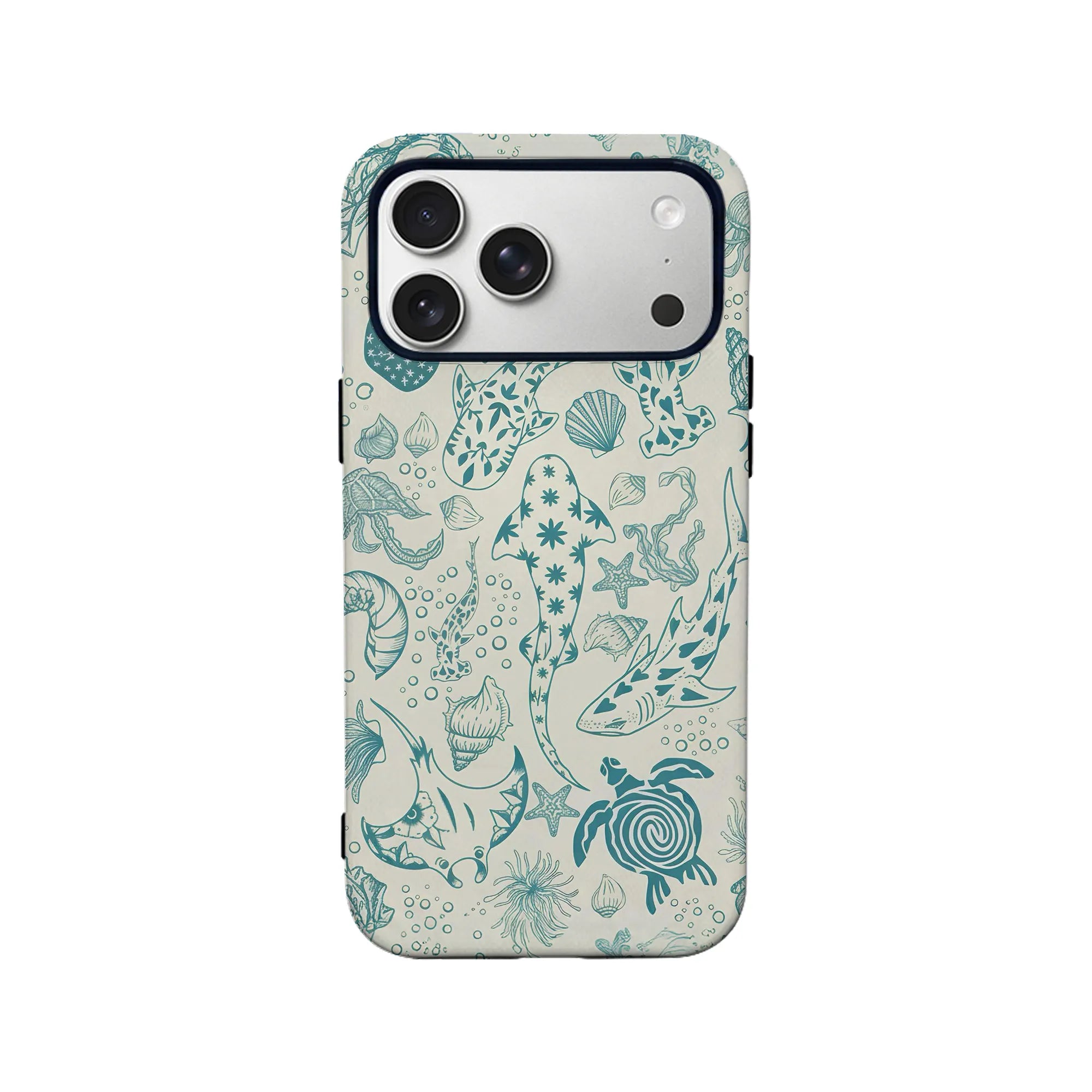 Dive into the beauty of the sea with the Ocean Life Phone Case. Featuring an intricate illustration of marine life including sharks, turtles, and vibrant seashells, this design celebrates the richness of underwater ecosystems.